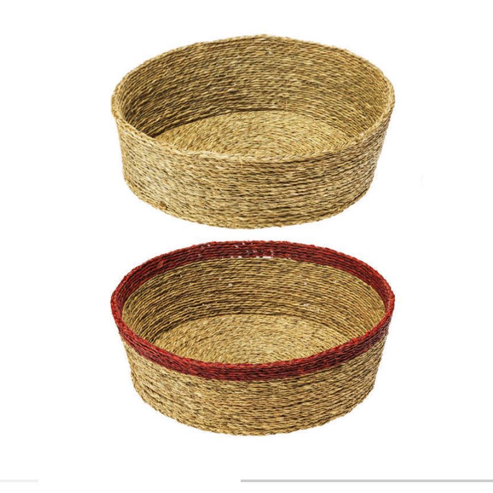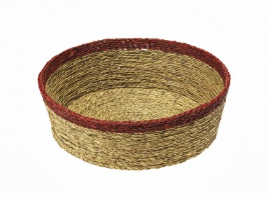 SZ1-86-043-03 Haushaltskorb rund, geflochten, natur mit rotem Rand, Sisal, D32