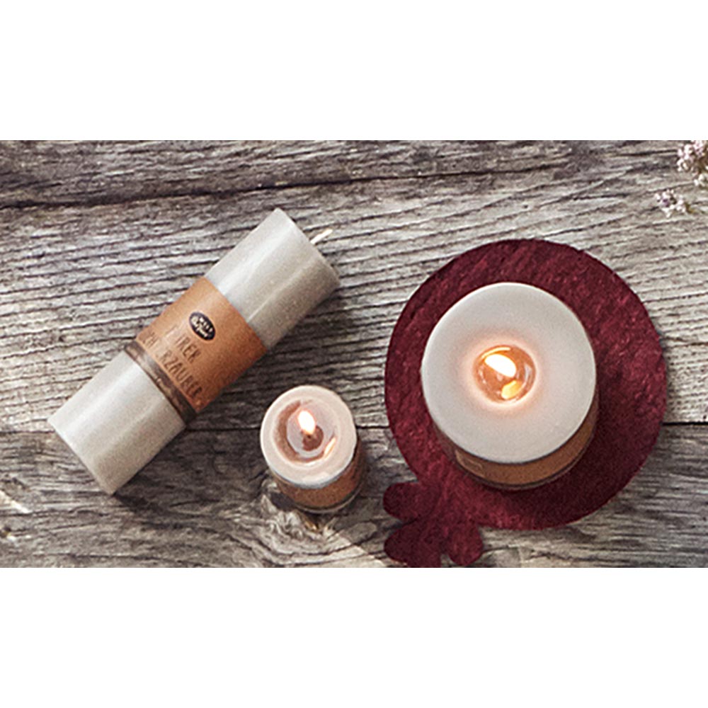 SZ2-49-001-01 Stumpenkerze "Fairer Lichterzauber", mit Banderole, cremeweiß, recyceltes Paraffin, 8x8