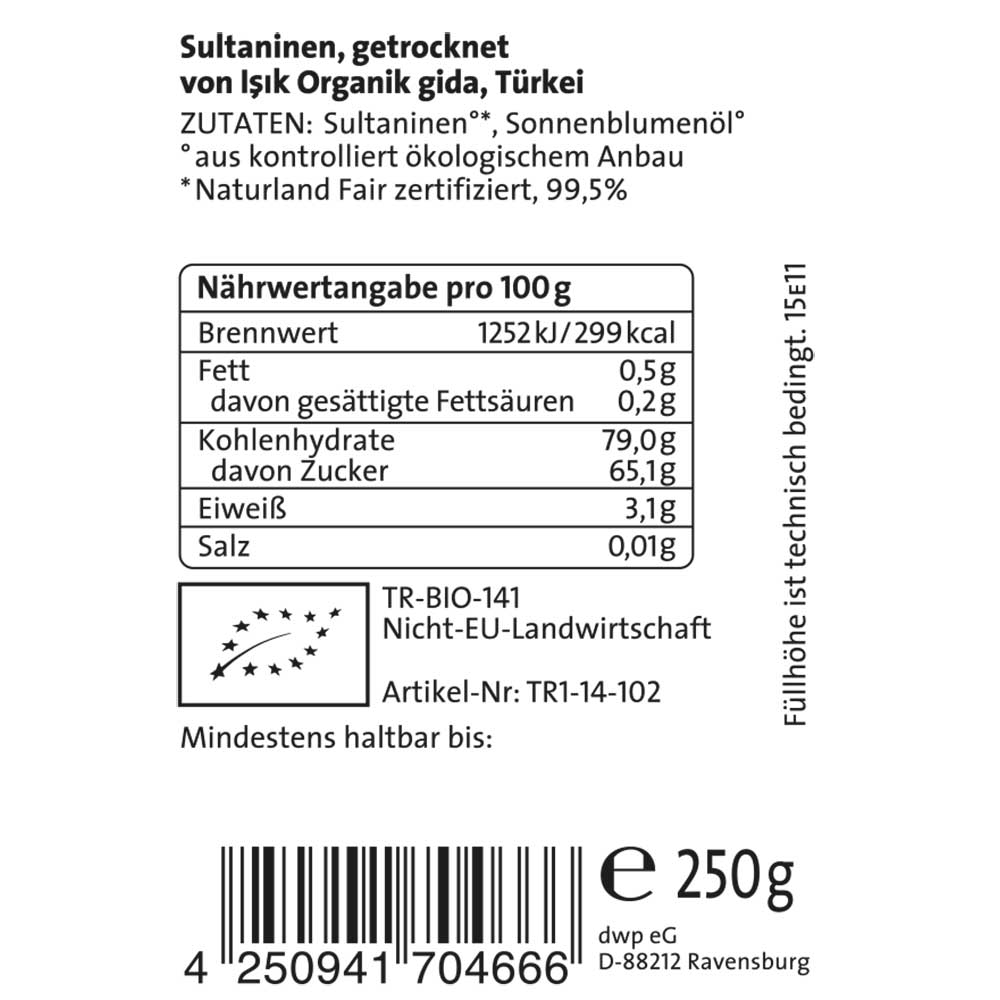 TR1-14-102 Sultaninen, getrocknet, bio°, Naturland Fair, 250g