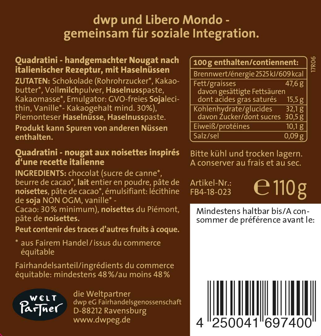 FB4-18-023 Quadratini, Nougat mit Haselnüssen, einzeln verpackt, 110g
