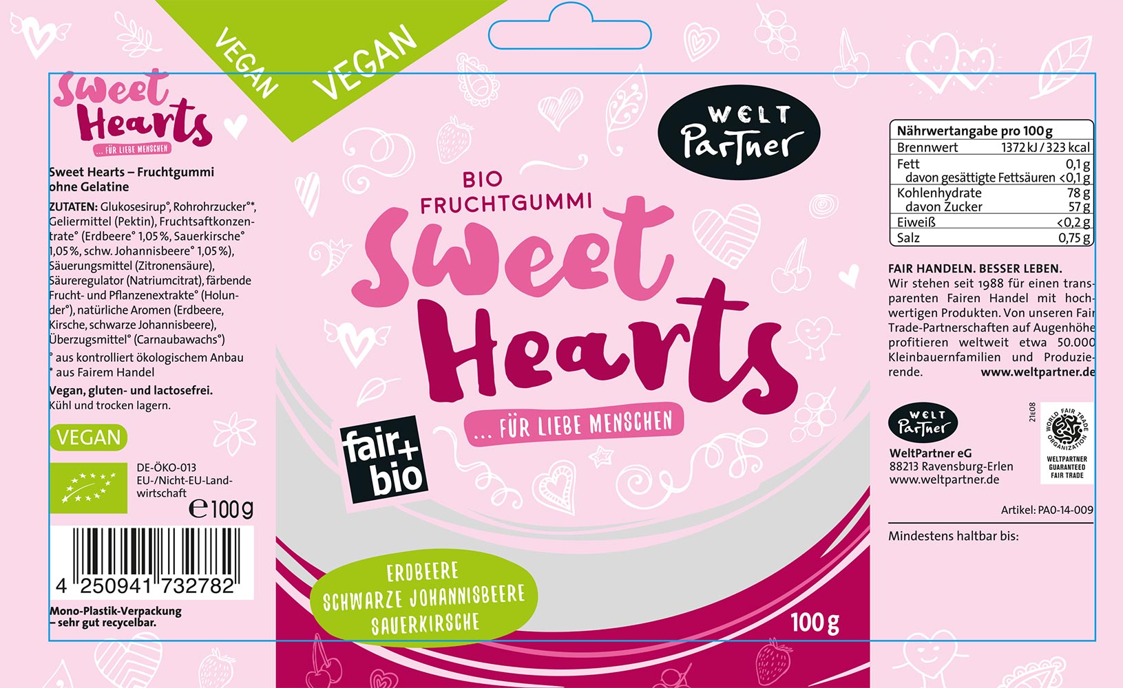 pa0-14-009 - Bio-Sweethearts°, Fruchtgummi-Herzen, 100g, ohne Gelatine, vegan Produktblatt