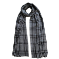 Schal, handgewebt, grau/schwarz/weiß kariert, kurzer Fransenrand, Recycling-Garn Baumwolle/Polyester (60/40), 70x200